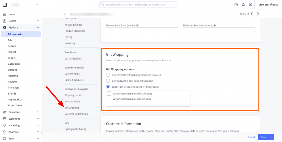 Es gibt noch eine weitere Option zum Hinzufügen von Geschenkverpackungen, allerdings auf Produktebene, und zwar wie folgt: