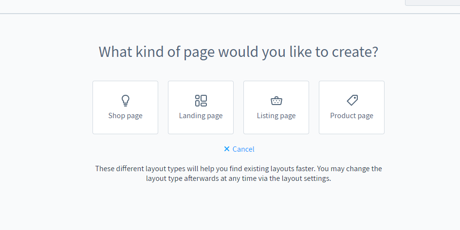 3. After clicking on the new layout button, choose the ‘Landing page‘ option.