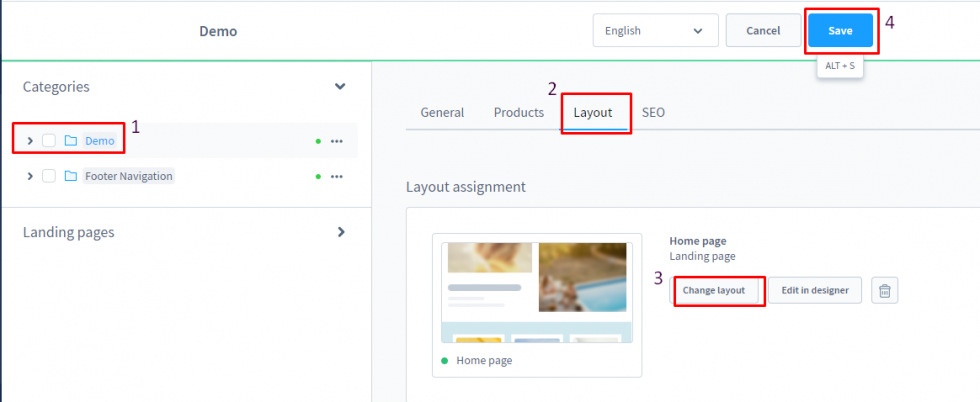 7. Click on the categories and go to the ‘Layout‘ section. And then click on the ‘Change layout‘ button. Choose the layout which you created and save the category.