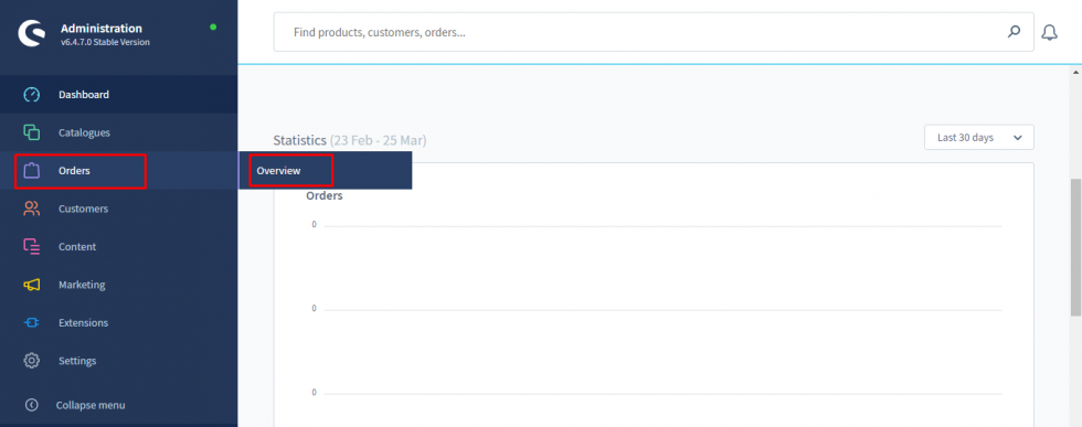 Step 1: Log in to the admin panel and go to Orders > Overview.