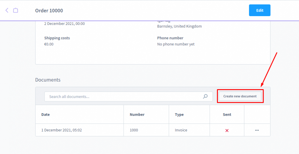 Step 3: Scroll down to the last section on ‘Documents’ and click on the ‘Create new document‘.